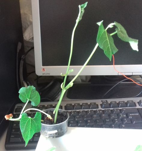 - Le N° 2 H : trois graines continuent de germer dans 50 ml de terre.