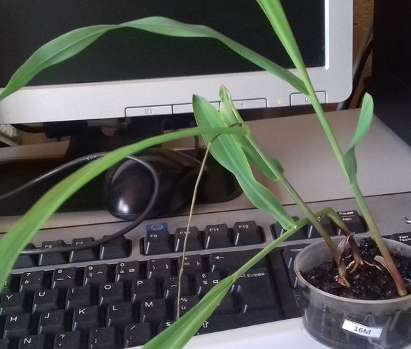 - Le N° 16 M : trois graines continuent de germer dans 50 ml de terre.