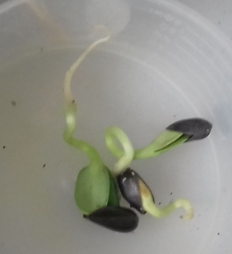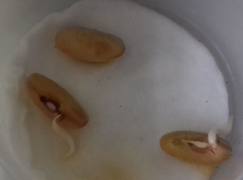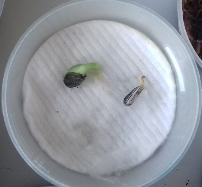 - Le N° 10 H : deux graines ont commencé à germer dans 50 ml de coton.
