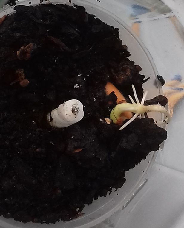 - Le N° 18 T : les deux graines continuent de germer dans 50 ml de terreau.