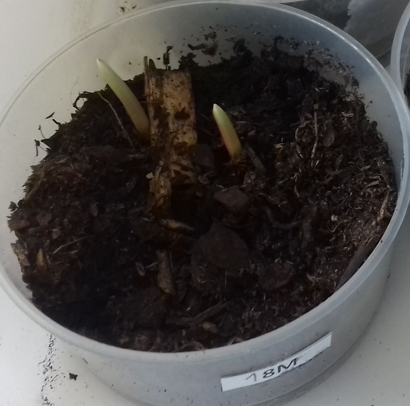- Le N° 18 M : deux graines ont germé dans 50 ml de terreau.