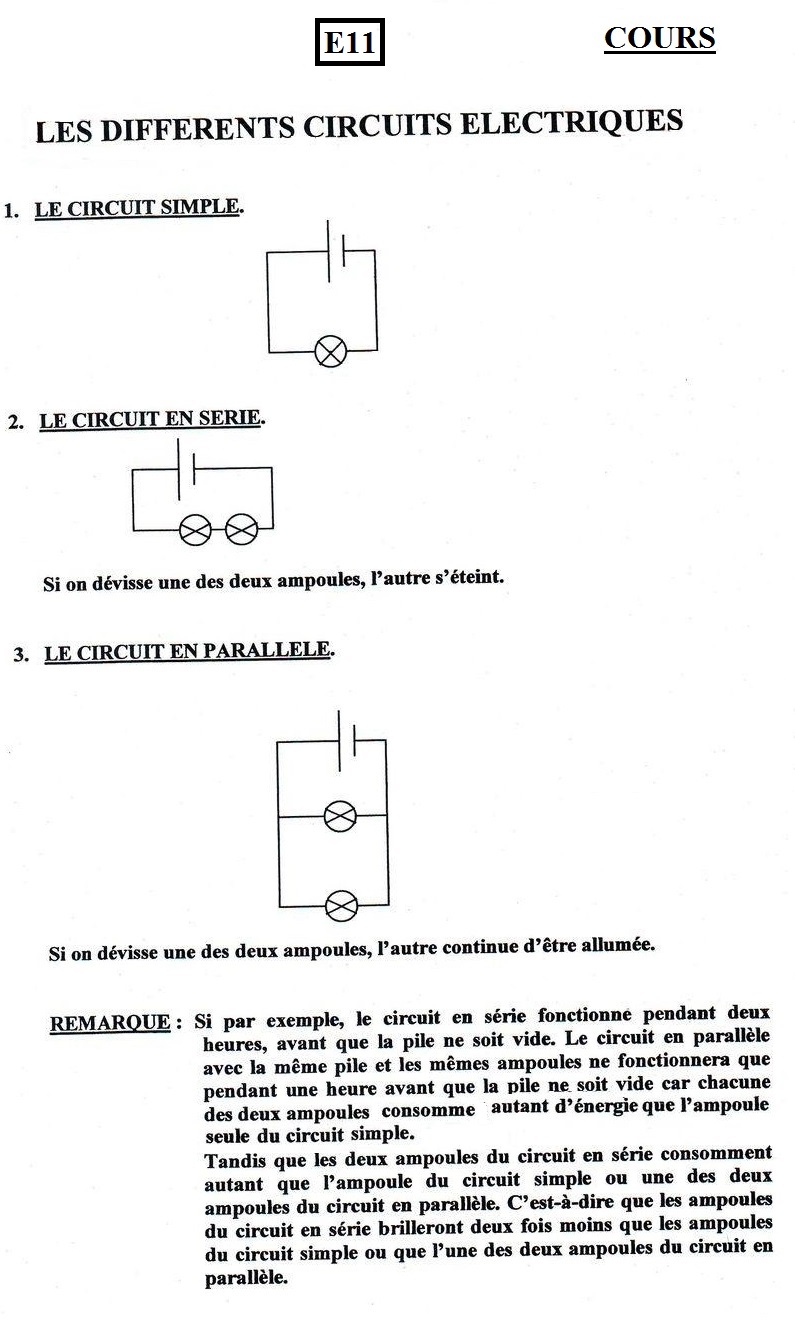 LES DIFFÉRENTS CIRCUITS ÉLECTRIQUES