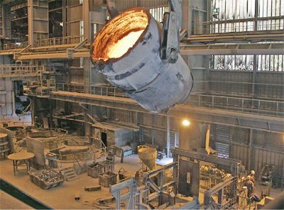 Le terme sidérurgie (du grec sideros, fer) c'est l'obtention de fonte, de fer et d'acier à partir de minerai. Les hauts fourneaux produisent de l’acier qui est un alliage de fer et de carbone.