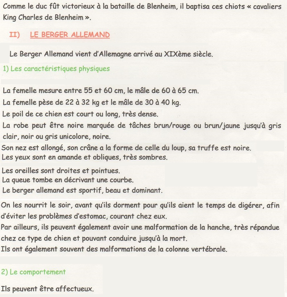 LE CHIEN : LE CAVALIER KING CHARLES ET LE BERGER ALLEMAND.