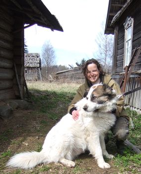La chercheuse vit dans une station biologique à 500 kilomètres à l'ouest de Moscou.On y étudie un "projet loup". Elle habite une isba en troncs d'arbre
