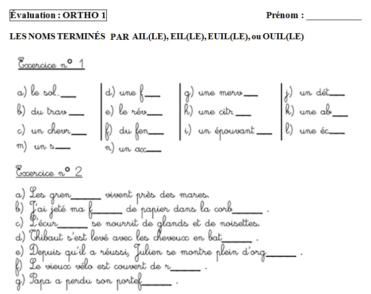 LES NOMS TERMINÉS PAR AIL(LE), EIL(LE), EUIL(LE), ou OUIL(LE).