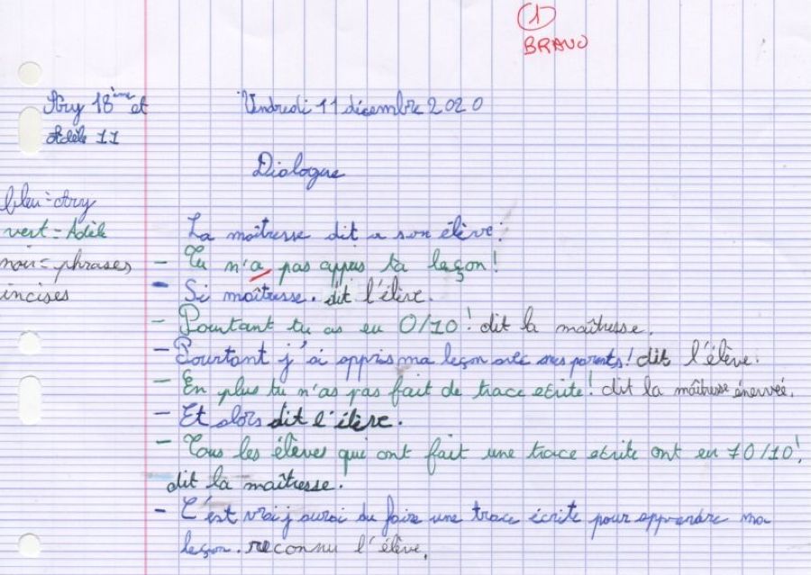 - ce jour-là, tu n'as pas appris ta leçon et le maître le remarque. Imagine l'excuse que tu vas donner et le dialogue entre vous.