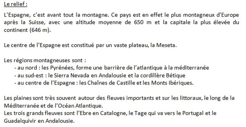 LA GEOGRAPHIE DE L'ESPAGNE.