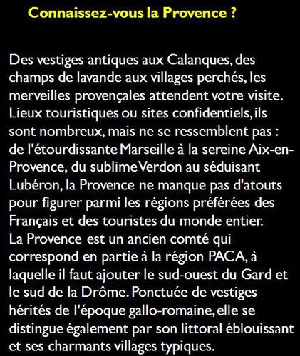 Clique ici pour accéder à un diaporama à propos de la région P.A.C.A..