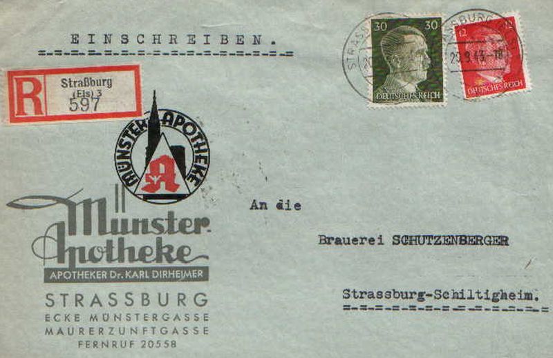 Expéditeur: Munster Apotheke (Avant l'Annexion : Pharmacie de la Cathédrale)