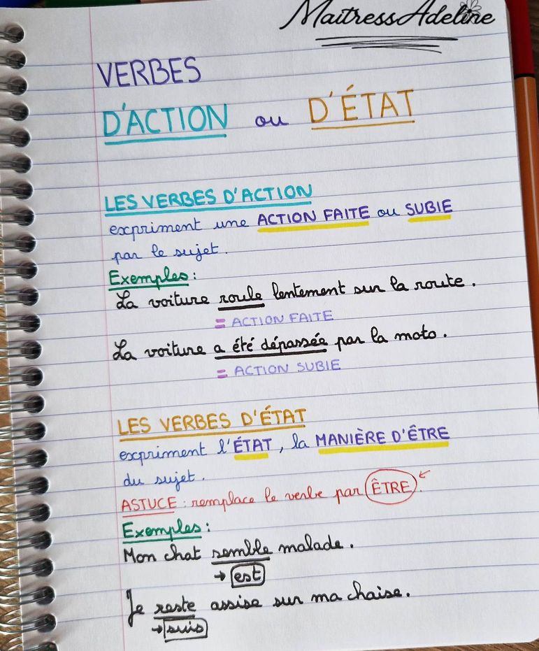 Les verbes d'action ou d'état (Site : MaitressAdeline)