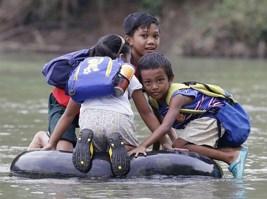 C’est une chance d’avoir des parents pour vous déposer à l’école. Dans certains endroits du monde, les écoliers doivent parfois affronter un rude et périlleux trajet pour aller à l’école.