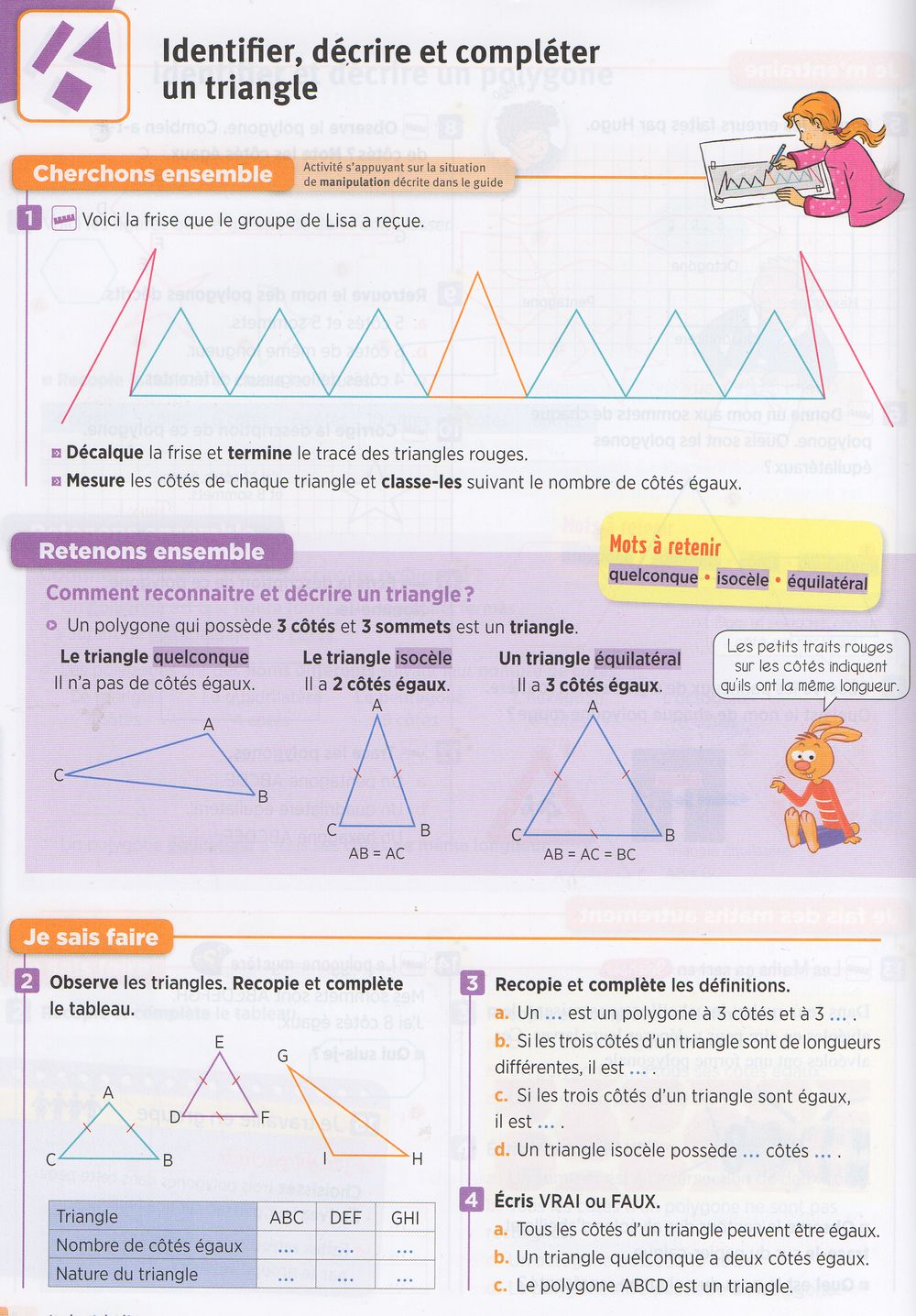 Identifier, décrire et compléter un triangle : LES ÉNONCÉS DES EXERCICES DES PAGES 128 et 129