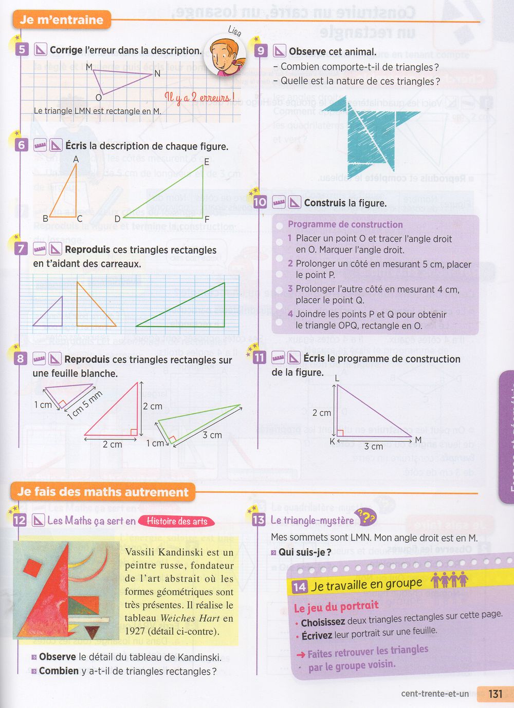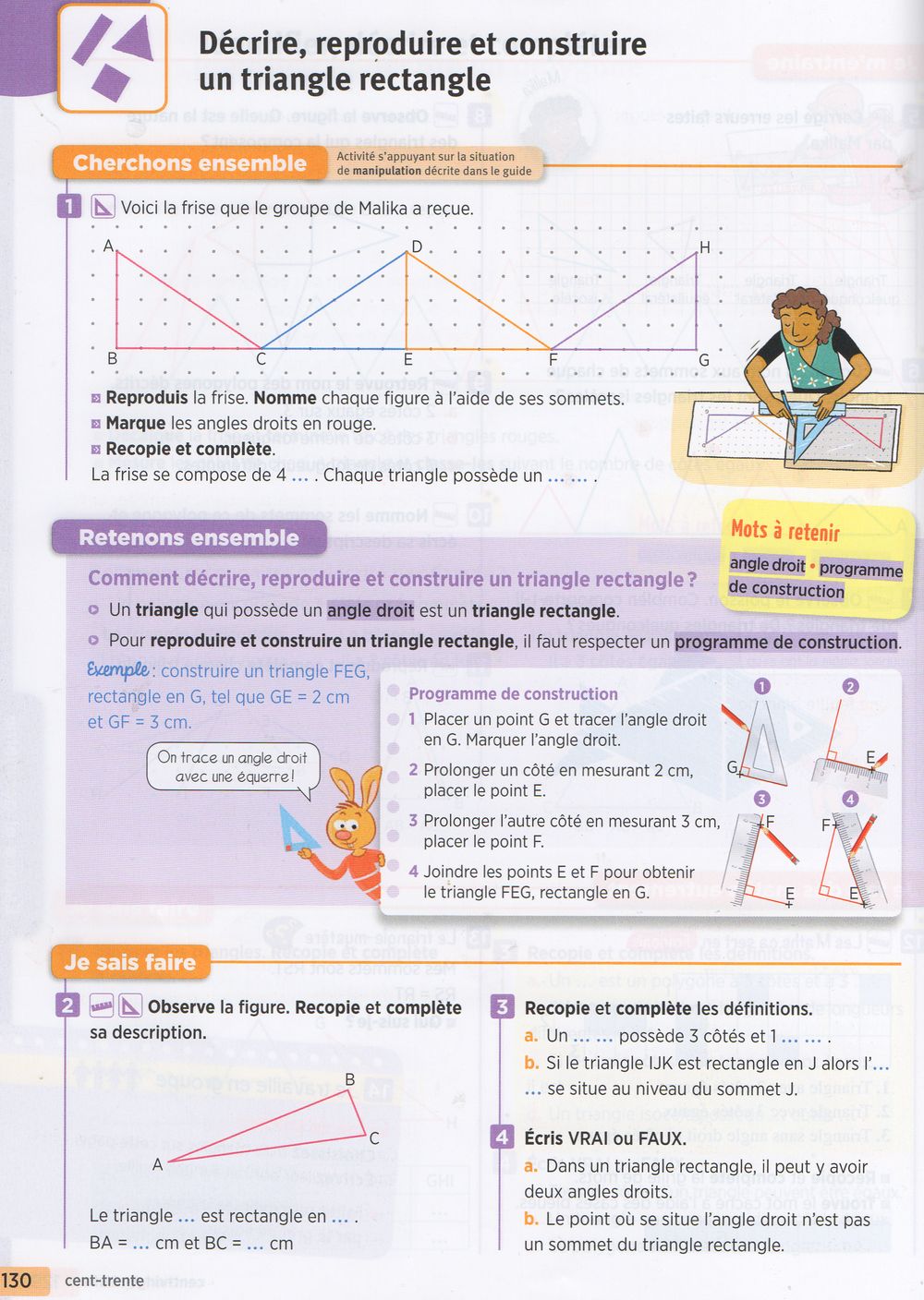 Décrire,reproduire et construire un triangle rectangle : LES ÉNONCÉS DES EXERCICES DES PAGES 130 et 131