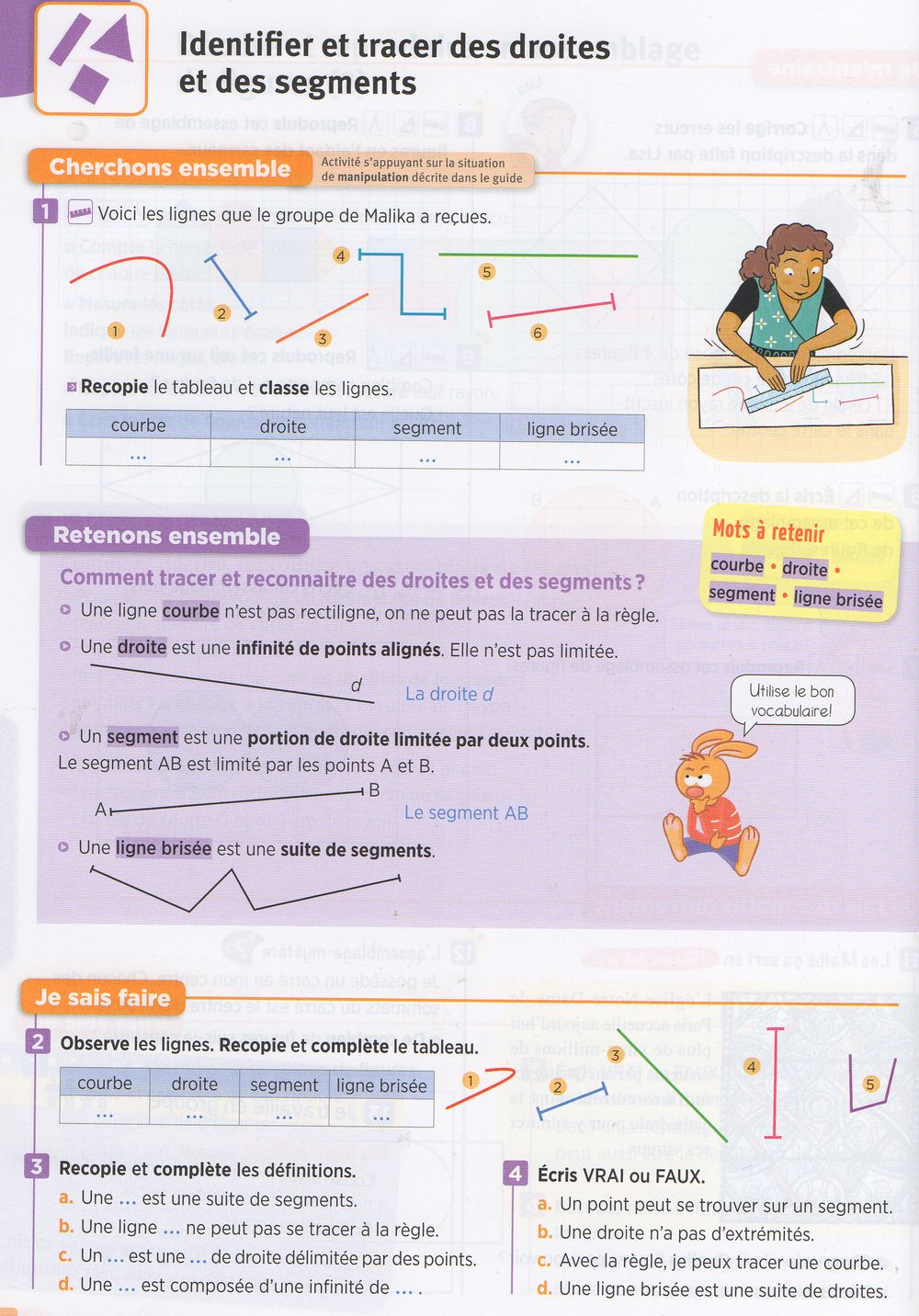 Identifier et tracer des droites et des segments : LES ÉNONCÉS DES EXERCICES DES PAGES 142 et 143