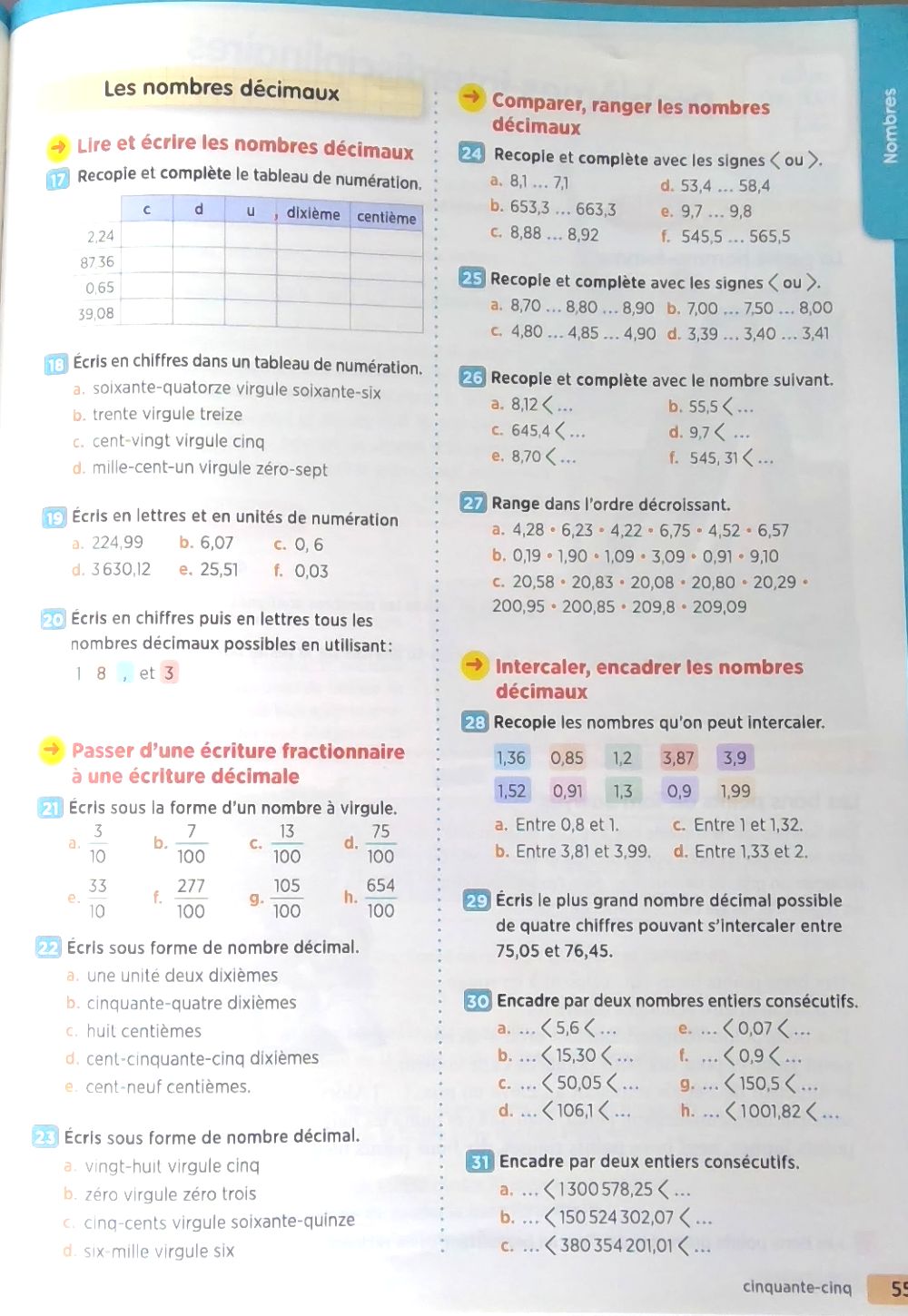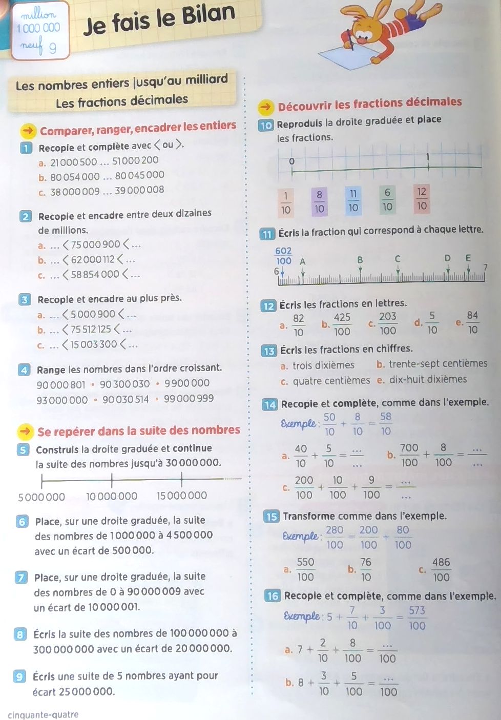 Je fais le bilan : LES ÉNONCÉS DES EXERCICES DES PAGES 54 et 55