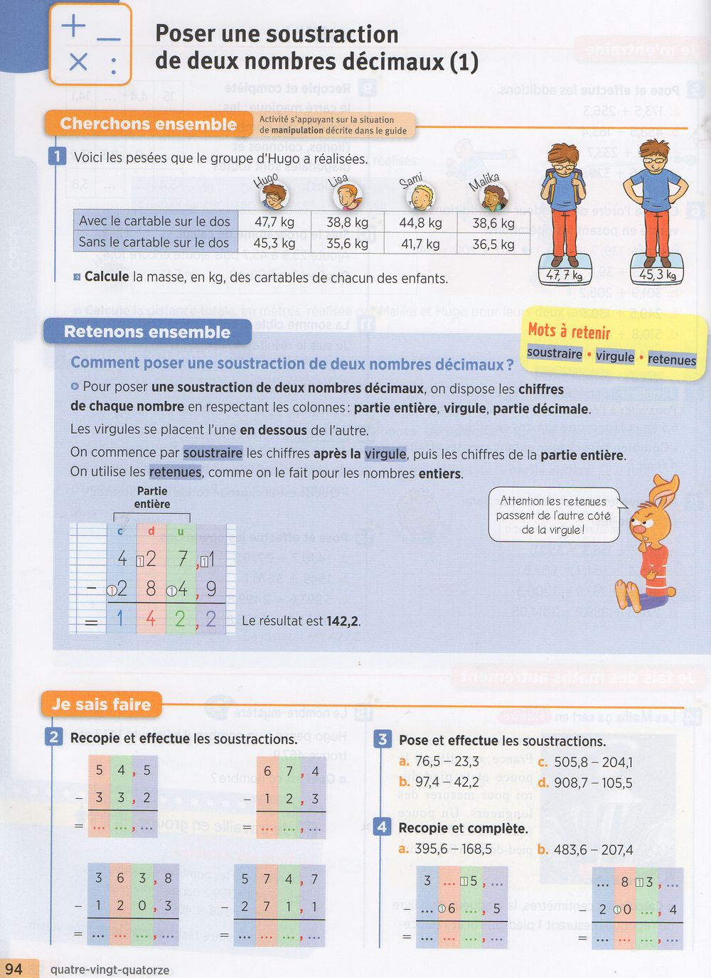 POSER UNE SOUSTRACTION DE DEUX NOMBRES DÉCIMAUX (1)