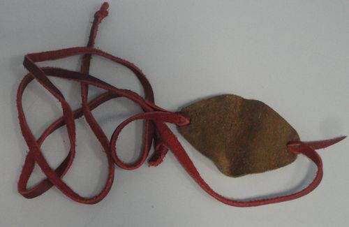 de plusieurs matériaux : os, bois et corne et recouvert de cuir.