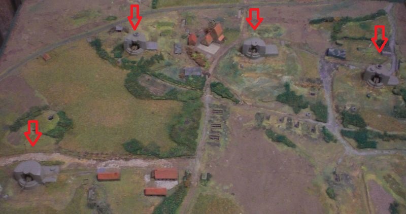La quatre casemates sont reliées entre elles par un chemin bétonné et alimentées en munition par trois entrepôts enterrés en arrière du dispositif. Les tirs étaient dirigés depuis un poste de commandement doté d’un observatoire et d’une salle de télémétrie, situé en bordure de falaise ; dix Tobrouk armés de mitrailleuses MG34, disséminés un peu partout sur le site étant chargés, pour leur part, d’en assurer la protection rapprochée.