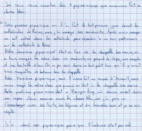 Petit déjeuner, pique-nique et diner du mercredi soir