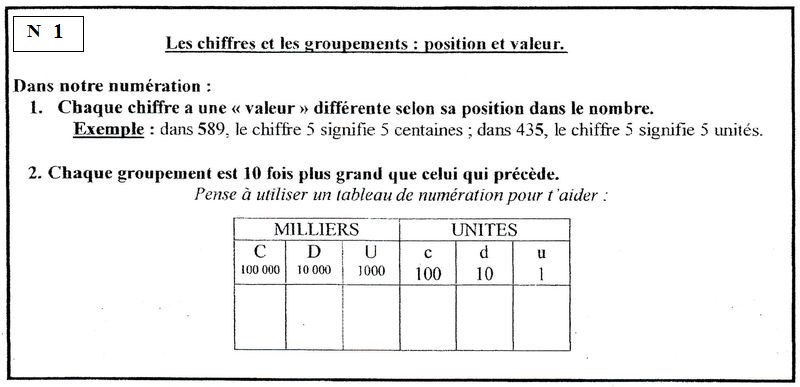 NUMÉRATION (N 1) : LES CHIFFFRES ET LES GROUPEMENTS, POSITION ET VALEUR
