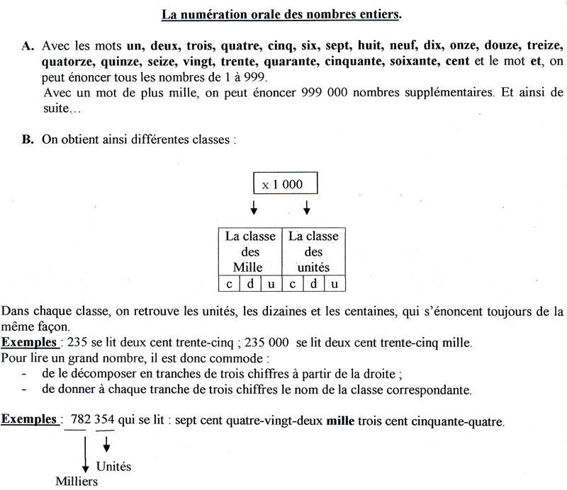 LA NUMÉRATION ORALE DES NOMBRES ENTIERS