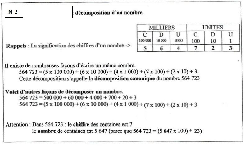 NUMÉRATION(N 2) : DÉCOMPOSITION D'UN NOMBRE
