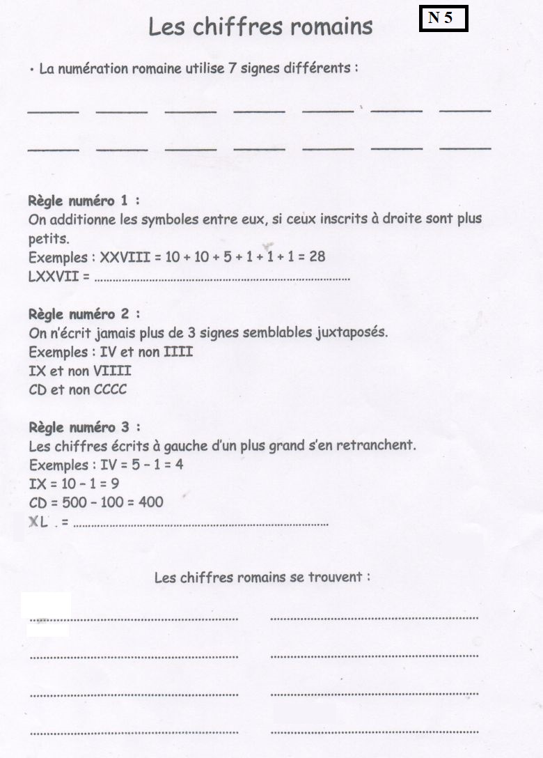 NUMÉRATION (N 5) : LES CHIFFRES ROMAINS