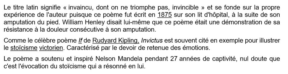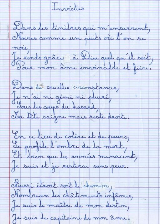 - Scène du poème Invictus tirée du film du même nom de Clint Eastwood lorsque François Pienaar visite la cellule de Mandela à la prison de Robben Island