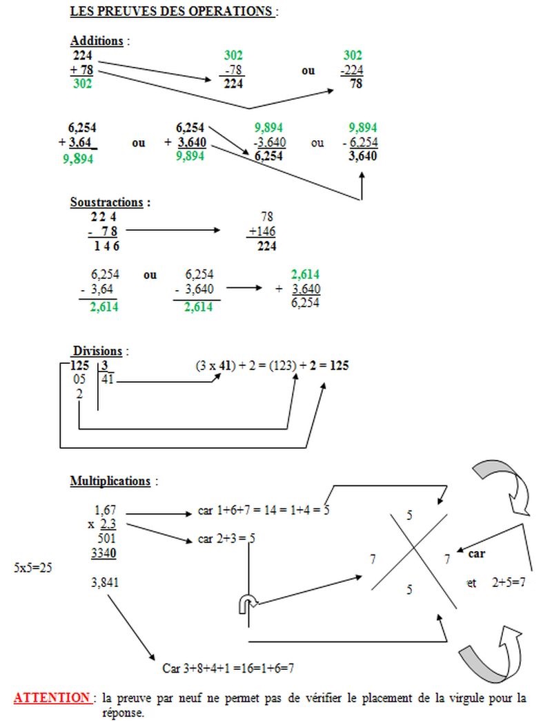 CALCULS : LES PREUVES DES 4 OPERATIONS.