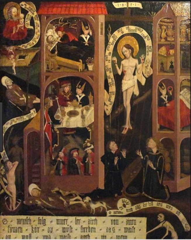 La prière du riche et du pauvre (huile sur bois) 1474