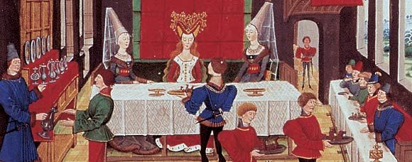 Le seigneur et ses invités sont accompagnés par des musiciens. Les repas durent parfois plusieurs heures.