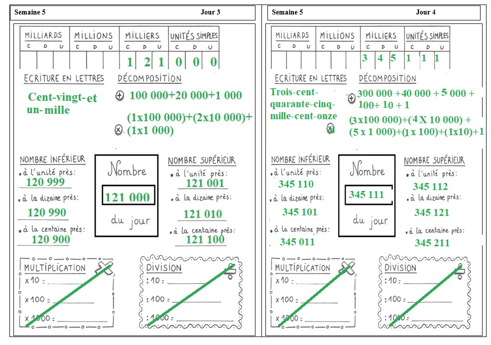 EXERCICES DE NUMÉRATION : SEMAINE 5