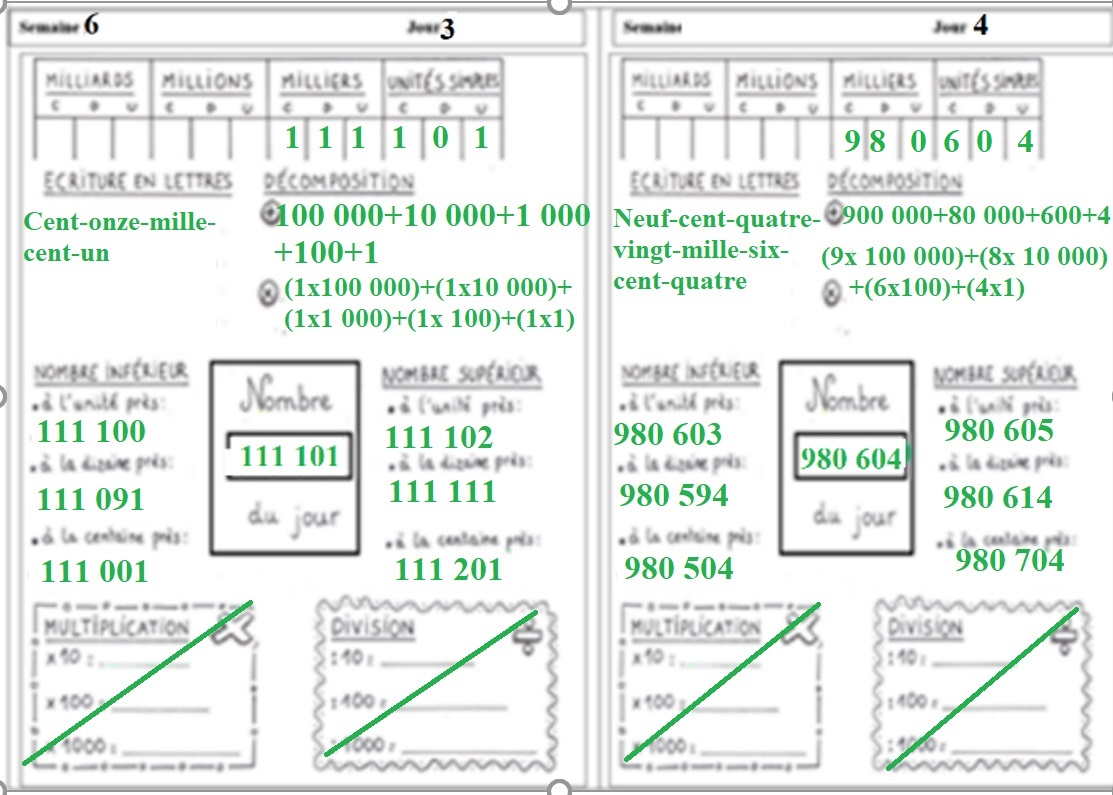 EXERCICES DE NUMÉRATION : SEMAINE 6