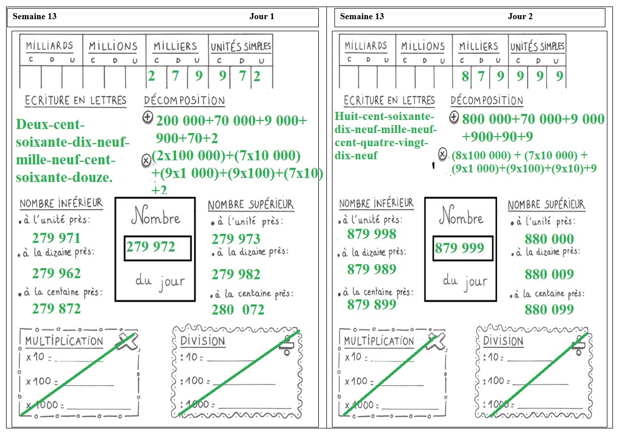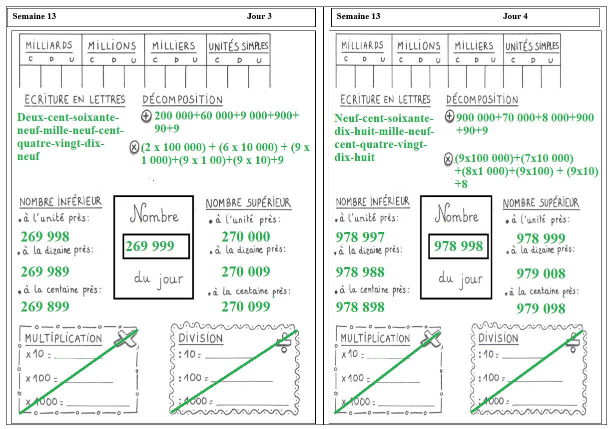 EXERCICES DE NUMÉRATION: SEMAINE 13