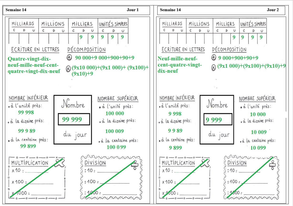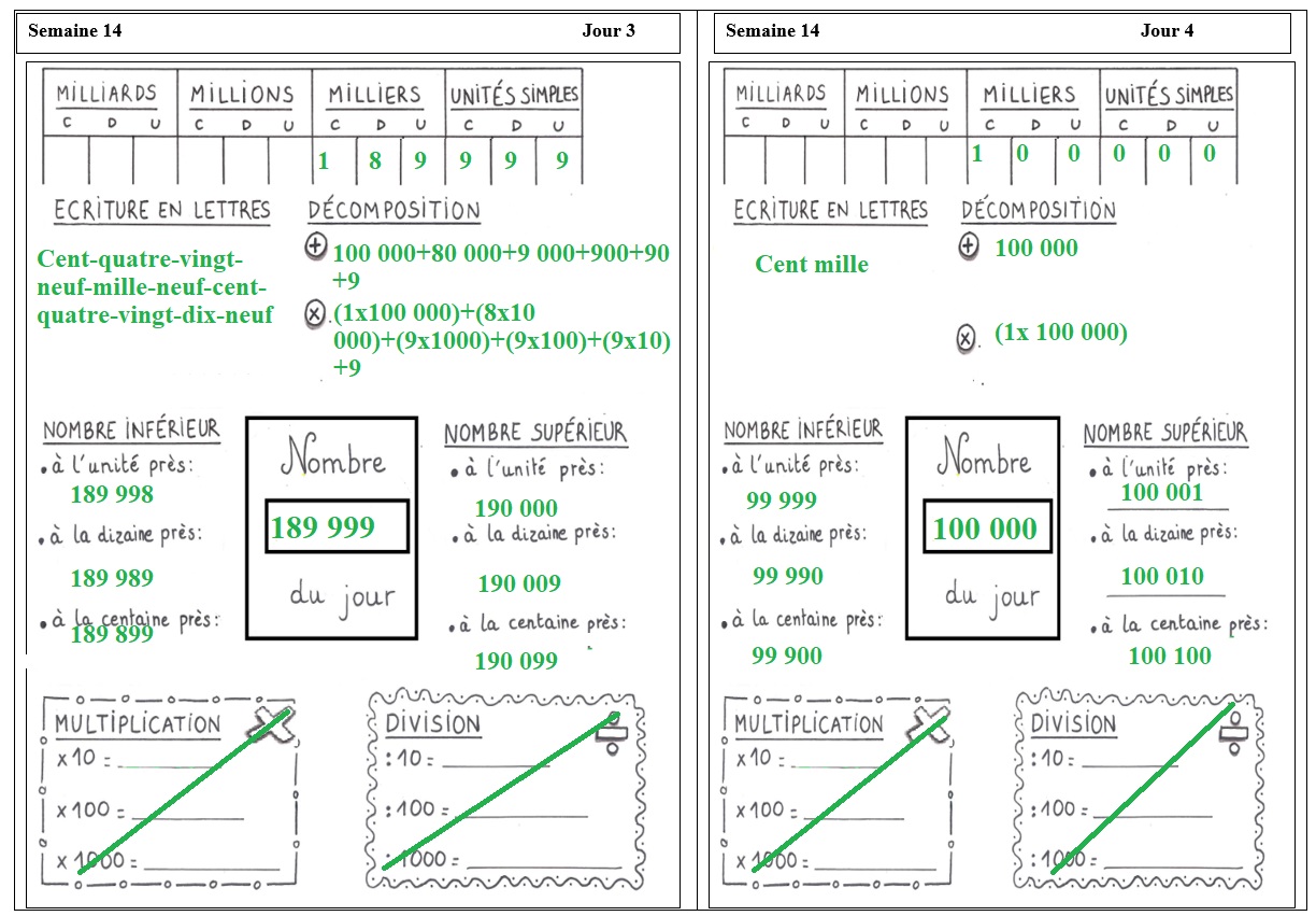 EXERCICES DE NUMÉRATION: SEMAINE 14