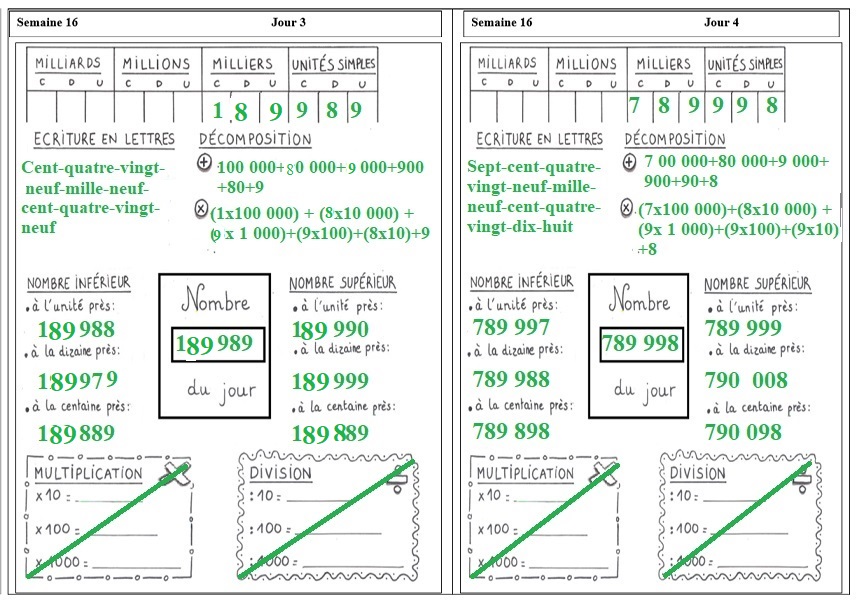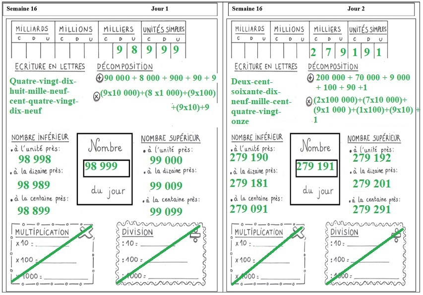 EXERCICES DE NUMÉRATION: SEMAINE 16