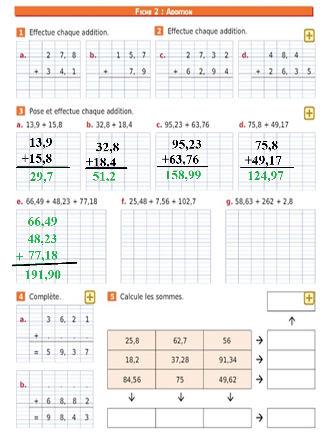 ADDITIONS DÉCIMALES