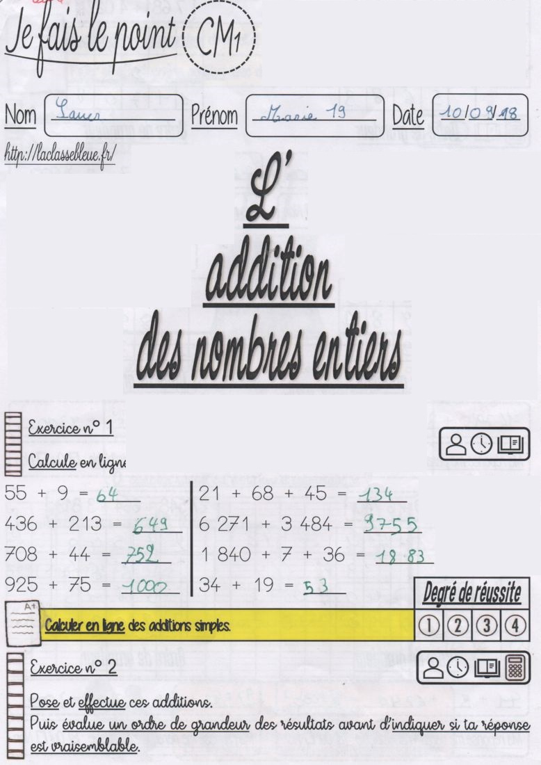 L'ADDITION DES NOMBRES D'ENTIERS (Je fais le point CM1)