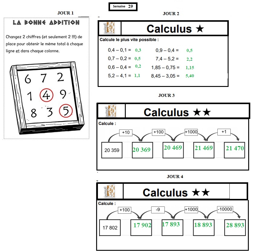 EXERCICES DE CALCUL MENTAL : SEMAINE 29