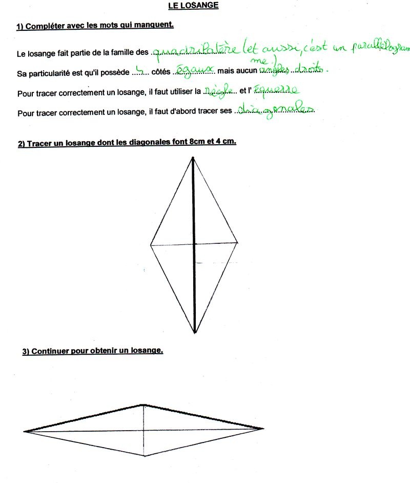 EVALUATION : LES QUADRILATERES (LES LOSANGES)