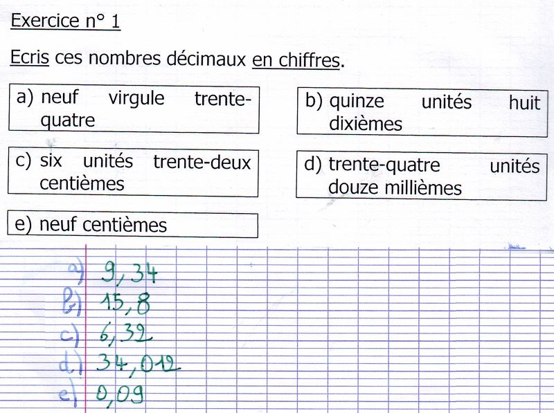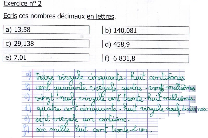 EVALUATION N°2 : LES NOMBRES DECIMAUX
