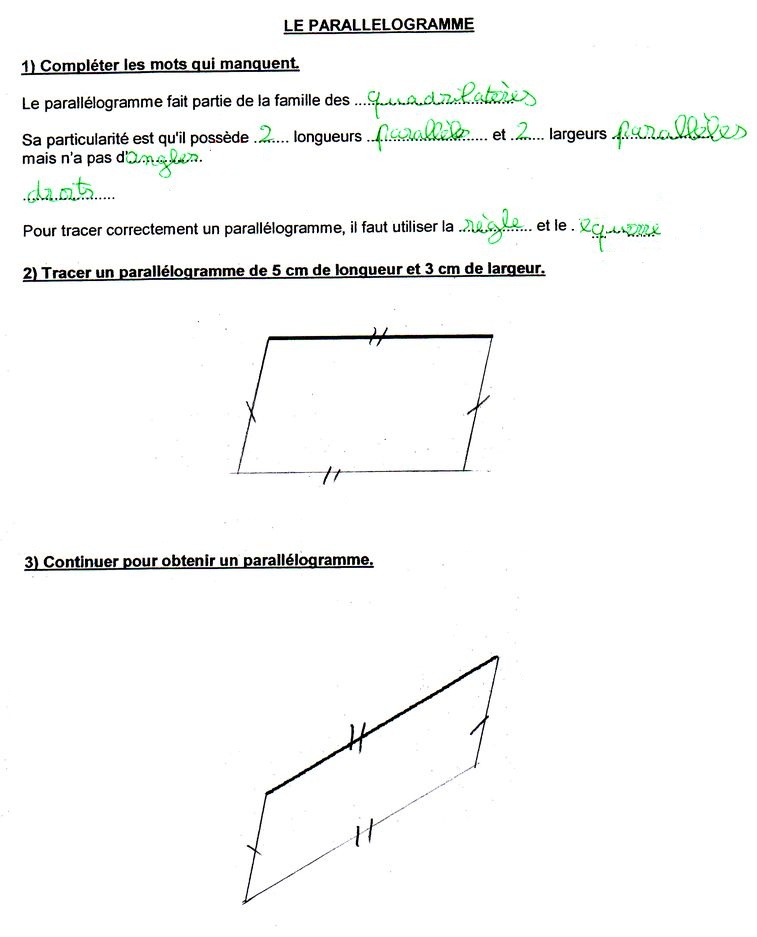 EVALUATION : LES QUADRILATERES (LES PARRALLELOGRAMMES)
