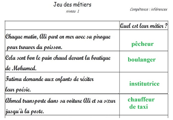 " Les inférences " sont des interprétations de lecture. Il faut que le lecteur interpréte le texte, il doit faire des déductions et construire des informations non explicites mais fondamentales. Pour cela, le lecteur doit faire appel à d'autres éléments du texte ou à ses connaissances personnelles qui ne sont pas immédiatement accessibles grâce au texte.