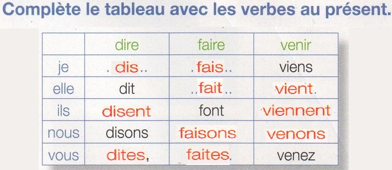 RÉPONSES : CONJUGAISON (SEMAINE 3).