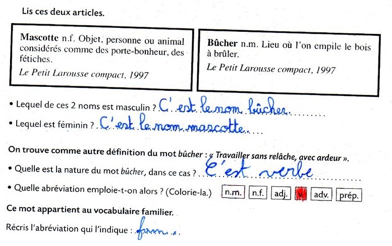 RÉPONSES UTILISATION DU DICTIONNAIRE (SEMAINE 2).