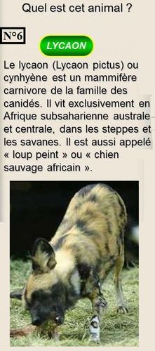 REPONSES QUIZ N°11 : LES ANIMAUX SAUVAGES D'AFRIQUE.
