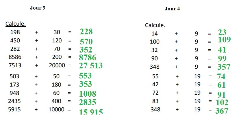 EXERCICES DE CALCUL MENTAL : REPONSES SEMAINE 23