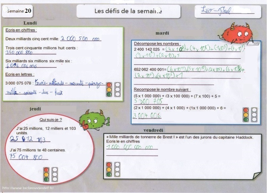 EXERCICES DE CALCUL MENTAL : RÉPONSES SEMAINE 20