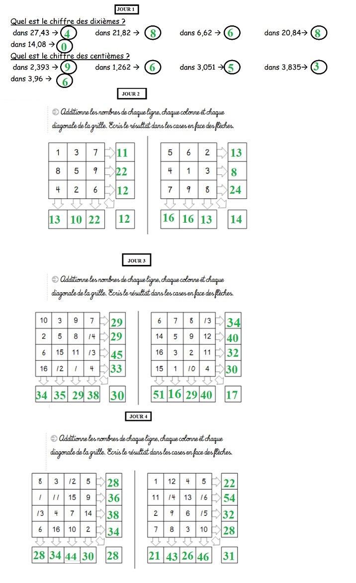 EXERCICES DE CALCUL MENTAL : SEMAINE 40